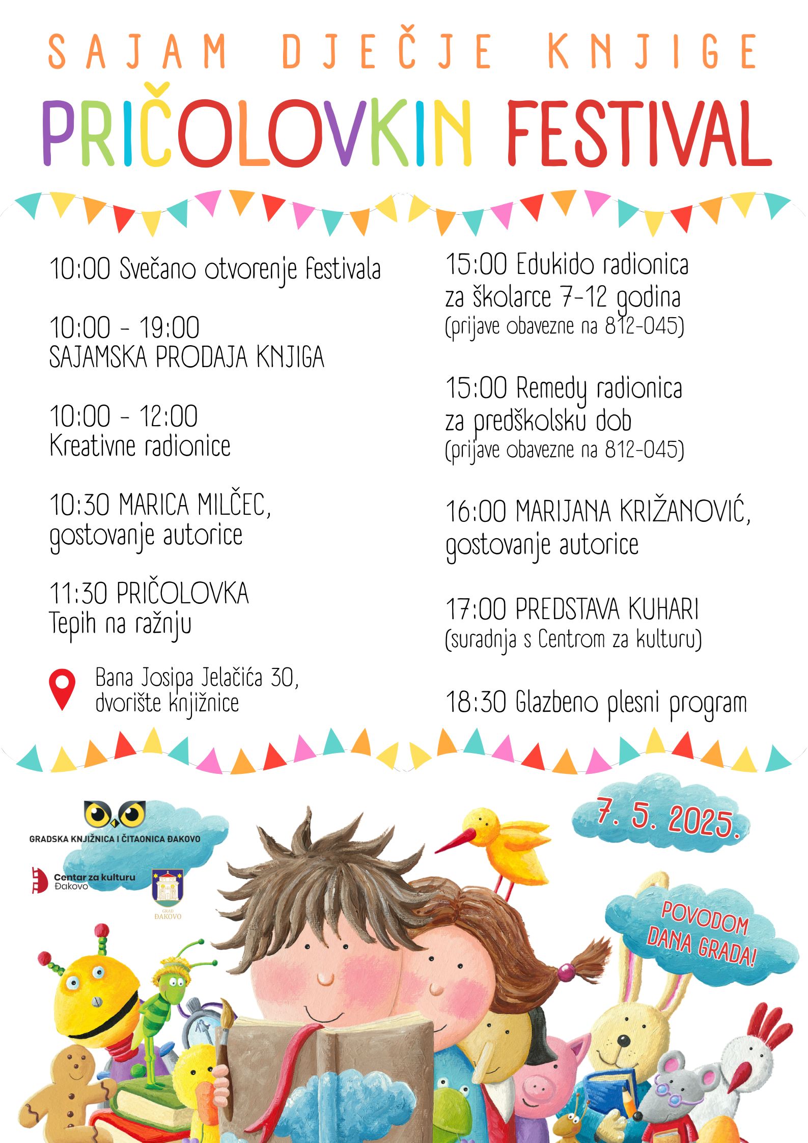Pričolovkin festival - sajam dječje knjige održava se u srijedu 7. svibnja u Đakovu u organizaciji Gradske knjižnice i čitaonice Đakovo.